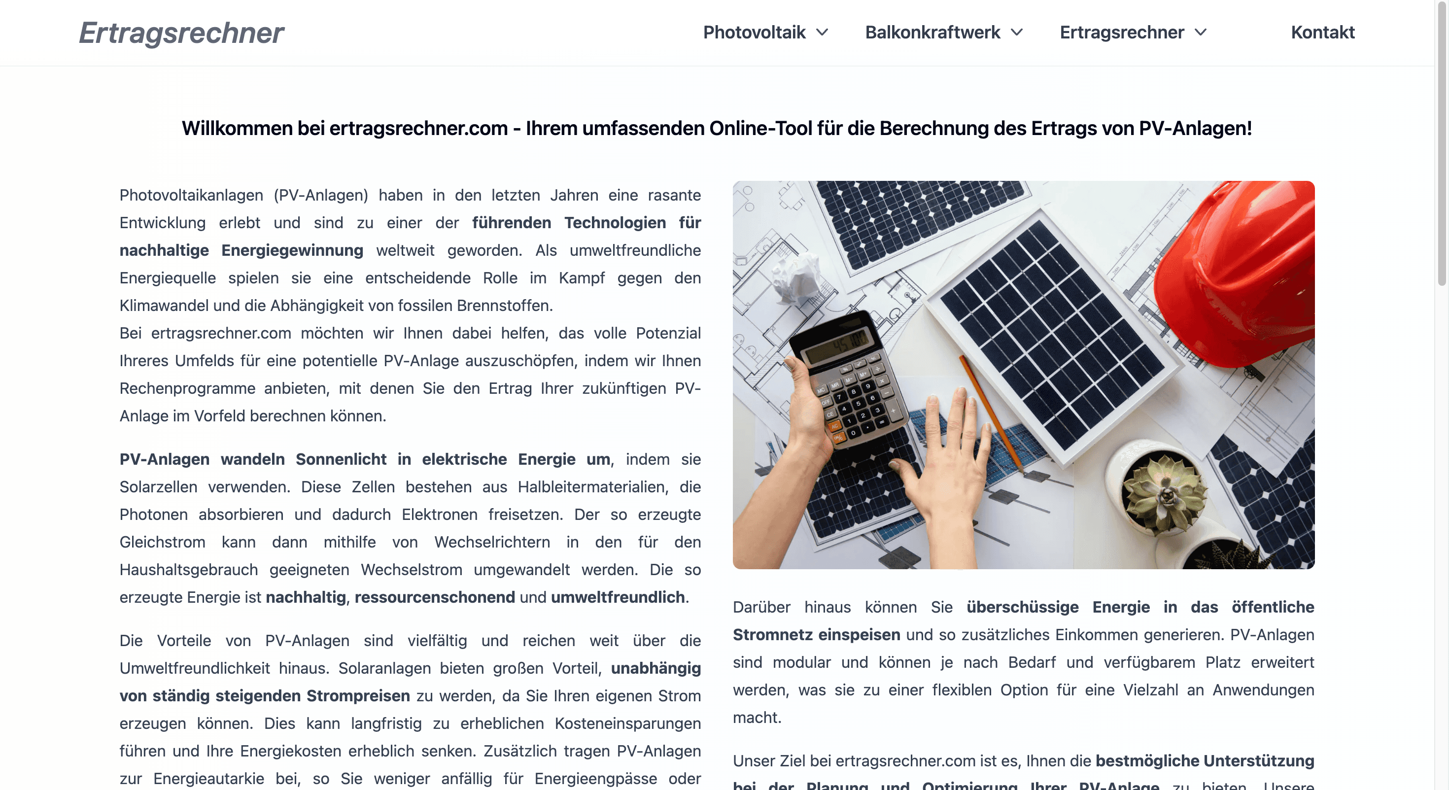 Berechnung des möglichen Ertrages, der Leistung, und Wirtschaftlichkeit für Haushalte